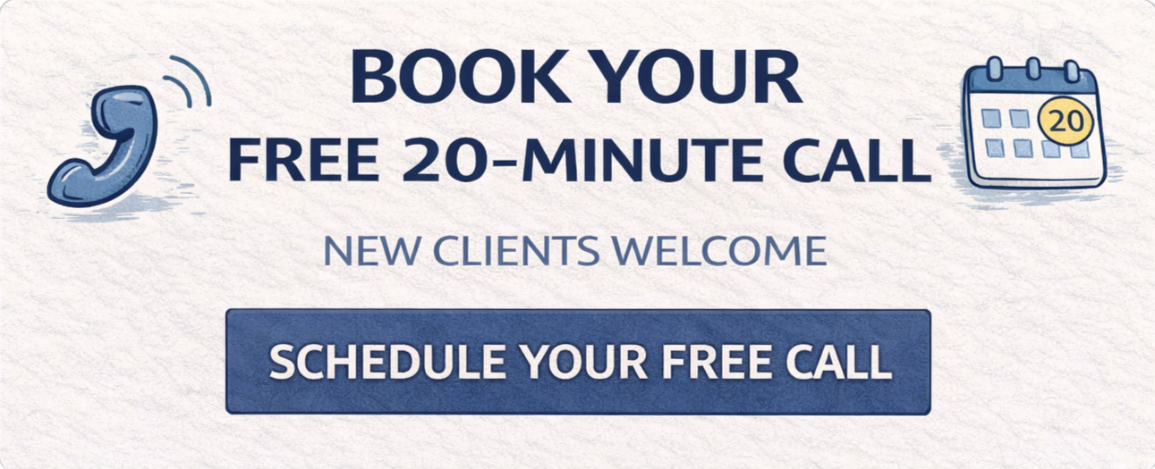 Book your Free 20-Minute Consultation or your next Coaching Session below! Simply pick a time that works for you, put in your info, and you're set!